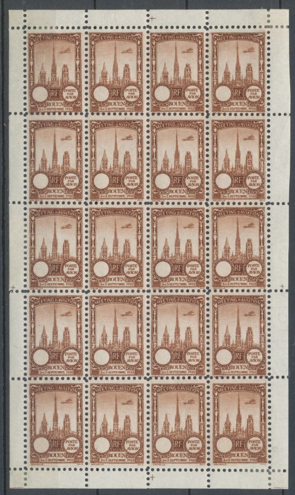 1922 Meeting a rien Rouen feuillet complet de 20 essais Neuf Brun s pia. Sans la valeur dans le cartouche. Timbres neufs luxes et neufs * (5 timbres avec trace de charni res sur les coins de feuillet)