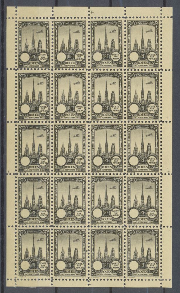 1922 Meeting a rien Rouen feuillet complet de 20 essais Neuf Jaune paille. Sans la valeur dans le cartouche. Timbres neufs luxes et neufs * (4 timbres avec trace de charni res sur les coins de feuillet)