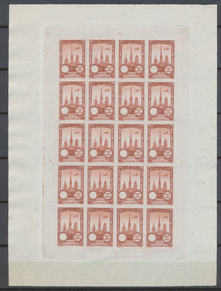 1922 Meeting a rien Rouen feuillet complet de 20 essais Neuf Brun non dentel . Sans la valeur dans le cartouche. Bloc neuf sans gomme ( mis ainsi). Cote plus de 400 .