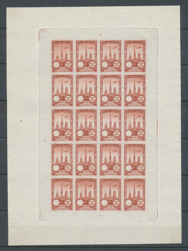 1922 Meeting a rien Rouen feuillet complet de 20 essais Neuf Brun rouge non dentel . Sans la valeur dans le cartouche. Bloc neuf sans gomme ( mis ainsi). Cote plus de 400 .