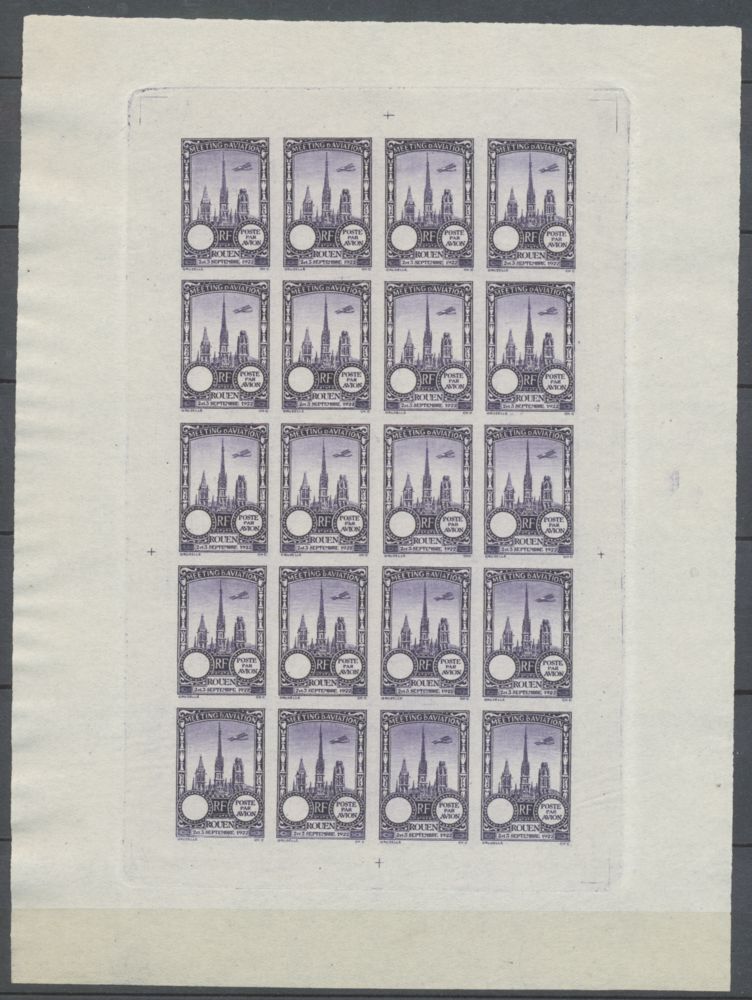 1922 Meeting a rien Rouen feuillet complet de 20 essais Neuf Violet non dentel . Sans la valeur dans le cartouche. Bloc neuf sans gomme ( mis ainsi). Cote plus de 400 .
