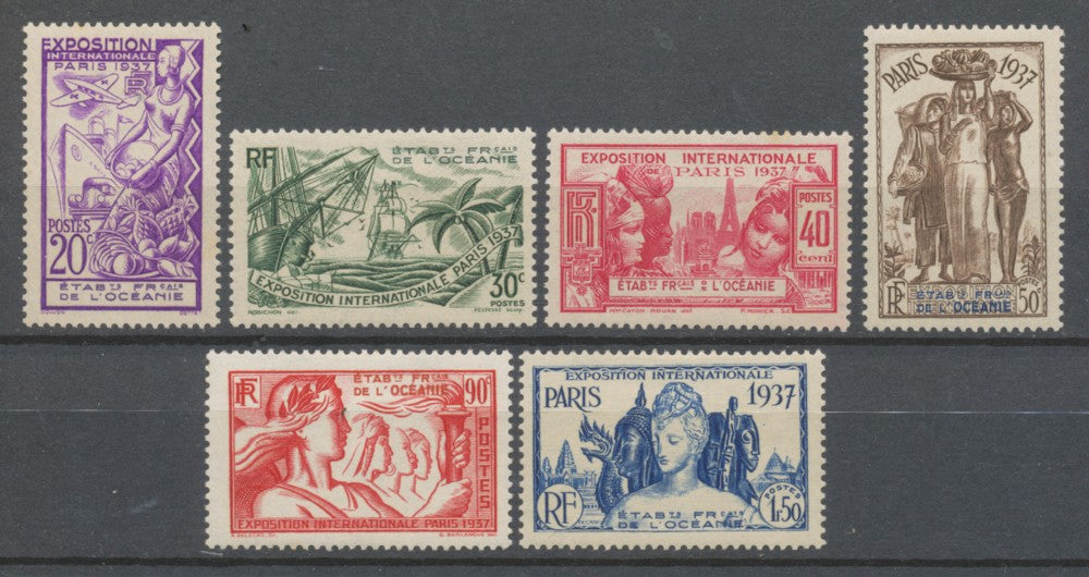 1937 Colonie Française OCEANIE Série Exposition Internationale Paris timbres N°121-126 Neuf *, TB. Cote 34€.