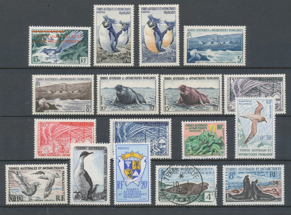 1955-59 Colonie Française TAAF N°1 à 15 sauf 13A. Neuf * traces très légères + 1 Obl (N°13B). Cote 183€
