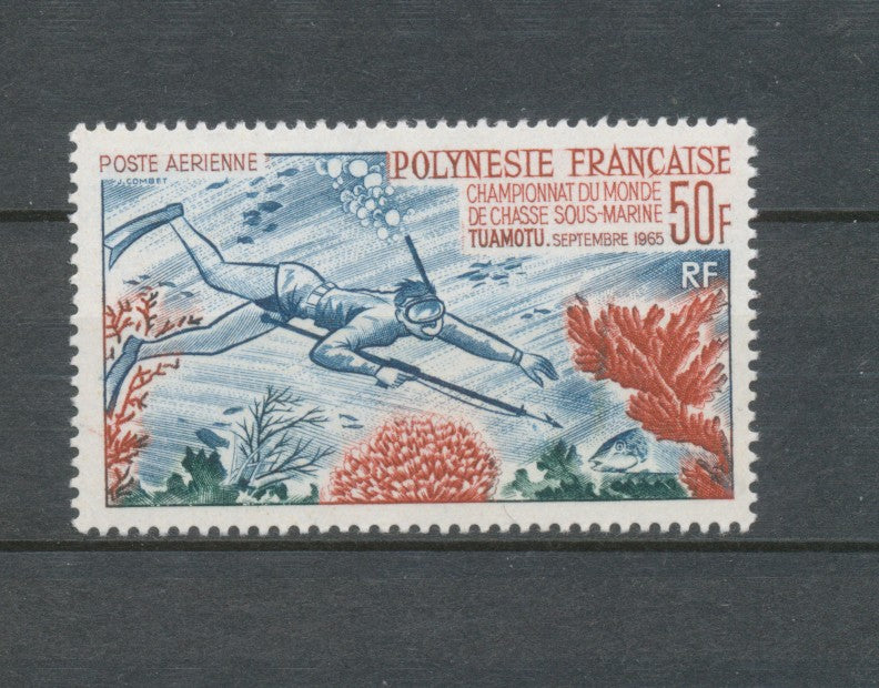 1965 Colonie POLYNESIE FRANCAISE Poste Aérienne N°14 50F Championnat du monde de chasse Sous marine. Neuf luxe **. TB. Cote 106 €