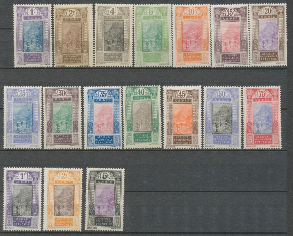 Série timbres Colonie Française Guinée N°63 à 79 Neuf *. TB dans l'ensemble, léger pli sur 15c/20c/ 5 fcs, le prix en tient compte.