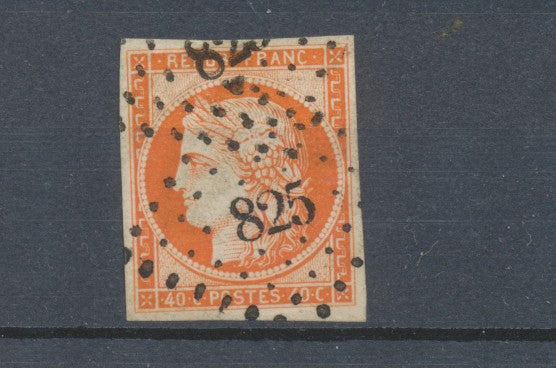 1849 France Classique Timbre N°5a 40c Orange vif Obl. petit chiffre 825 CHAUMONT-PORTIEN (7)