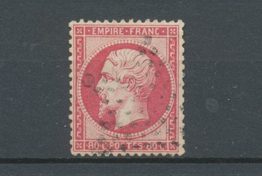 1862 France Classique N°24 80c Rose foncé obl étoile pleine.