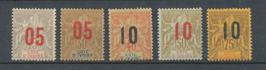 1912 Colonie Française Cote d'Ivoire N°36 à 40 Neuf *, sans les A (chiffres espacés)