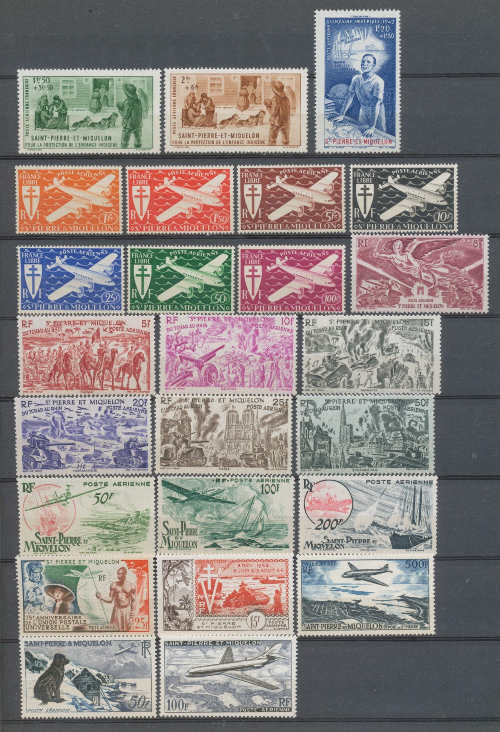 1942-57 Colonies françaises SPM Poste aérienne complet N°1 à 25 N**/*