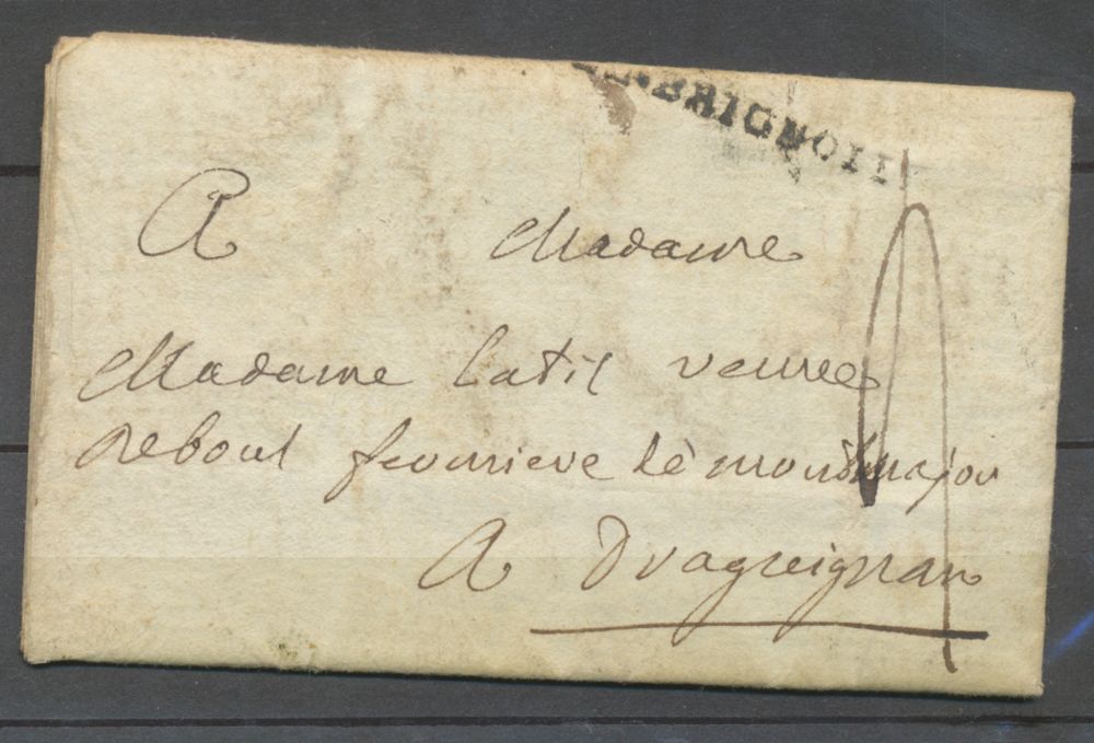 1786 Lettre Marque Lenain N°2 DE BRIGNOLLE 37mm noir VAR(78). Indice 10. Date marqué dans le texte mais à vérifier avec le courrier.