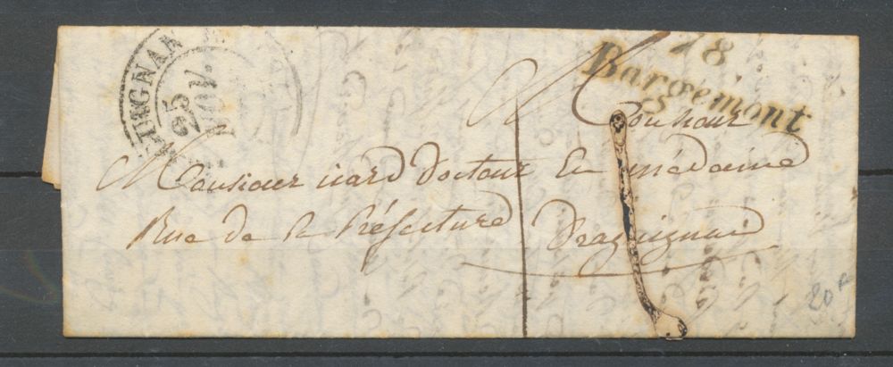 1831 Lettre Cursive 78 Bargemont + CAD T12 DRAGUIGNAN VAR(78) TB. Indice 11 TB.