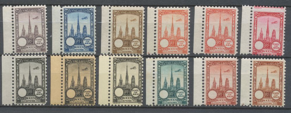 1922 Meeting d'aviation ROUEN 12 vignettes BDF sans faciale couleurs diff rentes N**/N* N3828