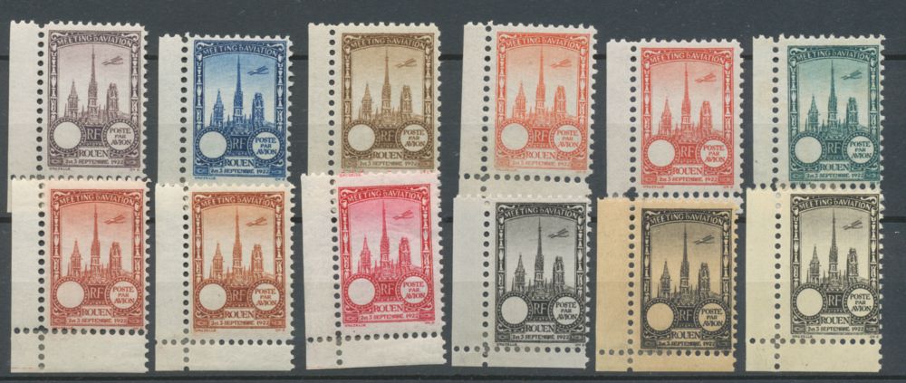 1922 Meeting d'aviation ROUEN 12 vignettes BDF sans faciale couleurs diff rentes N**/N* , 1 adh rence sur un Timbre N3832