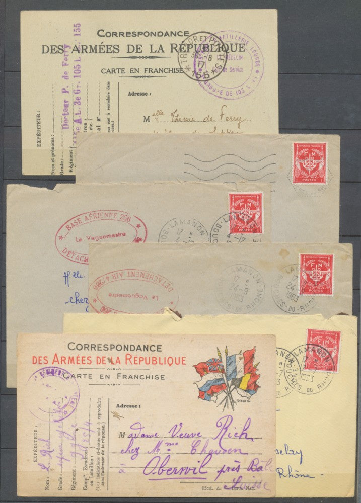 Lot de 11 Enveloppes et cartes postales Franchise Militaire. TB N3952